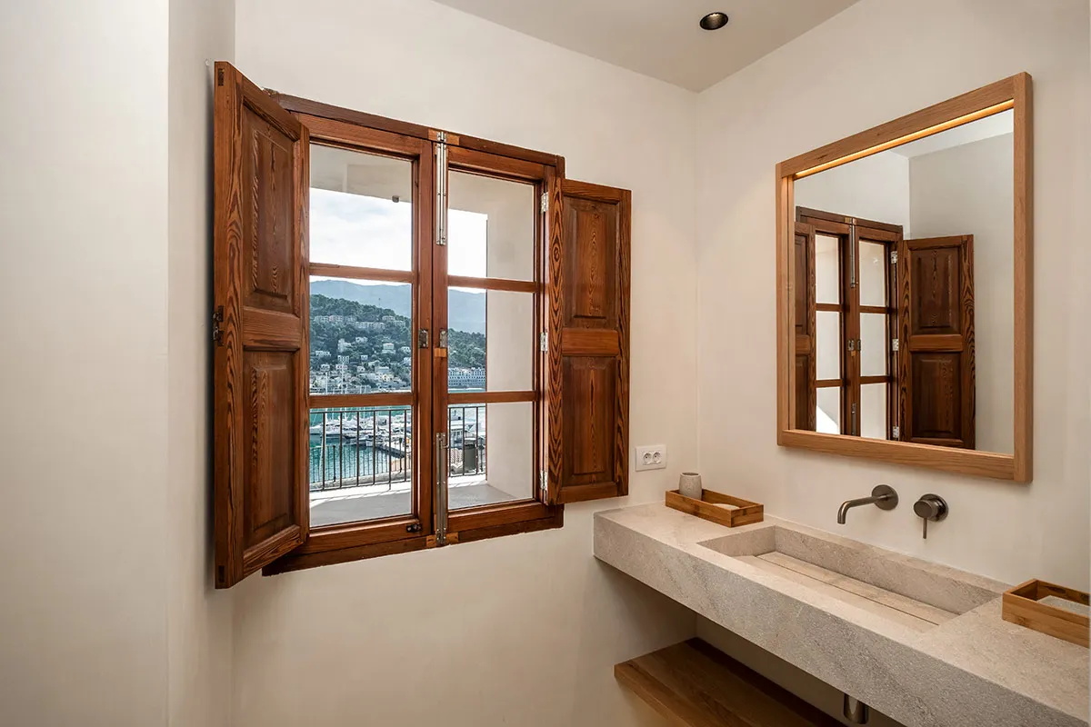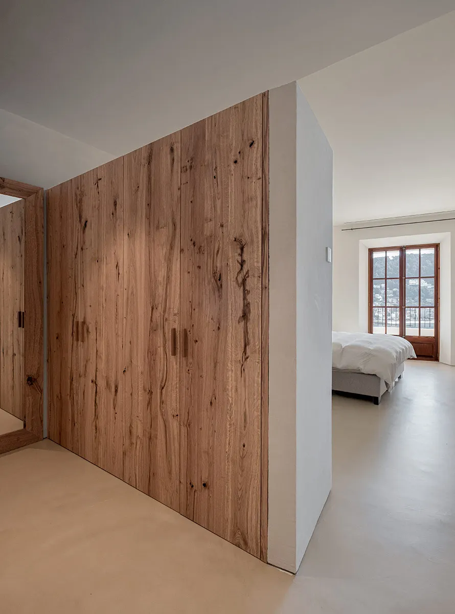 Altres elements fabricats en fusta: Miralls, prestatge, parquet, armaris … escala folrada amb fusta de roure, construïda conjuntament amb Construccions Puigserver i GV27 Arquitectura.