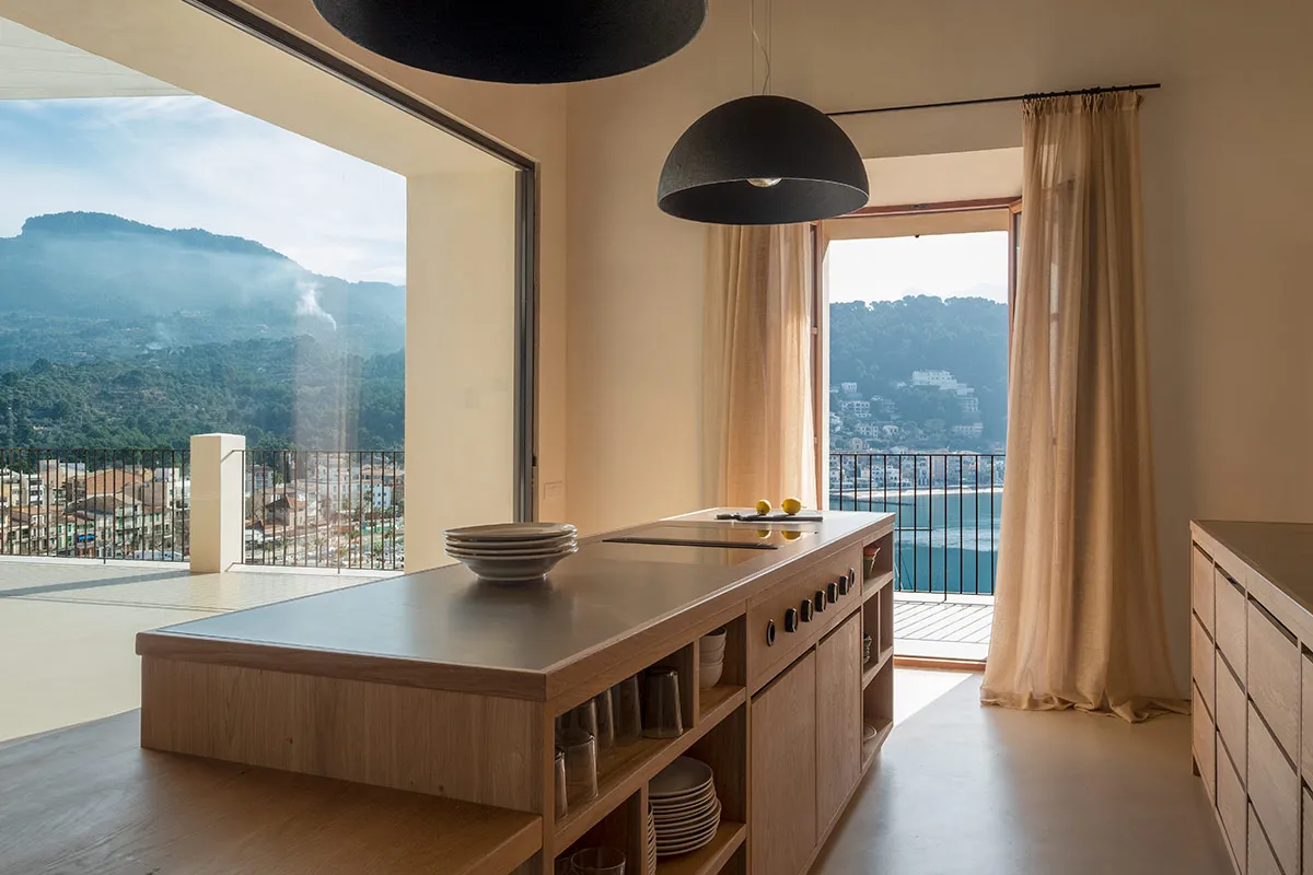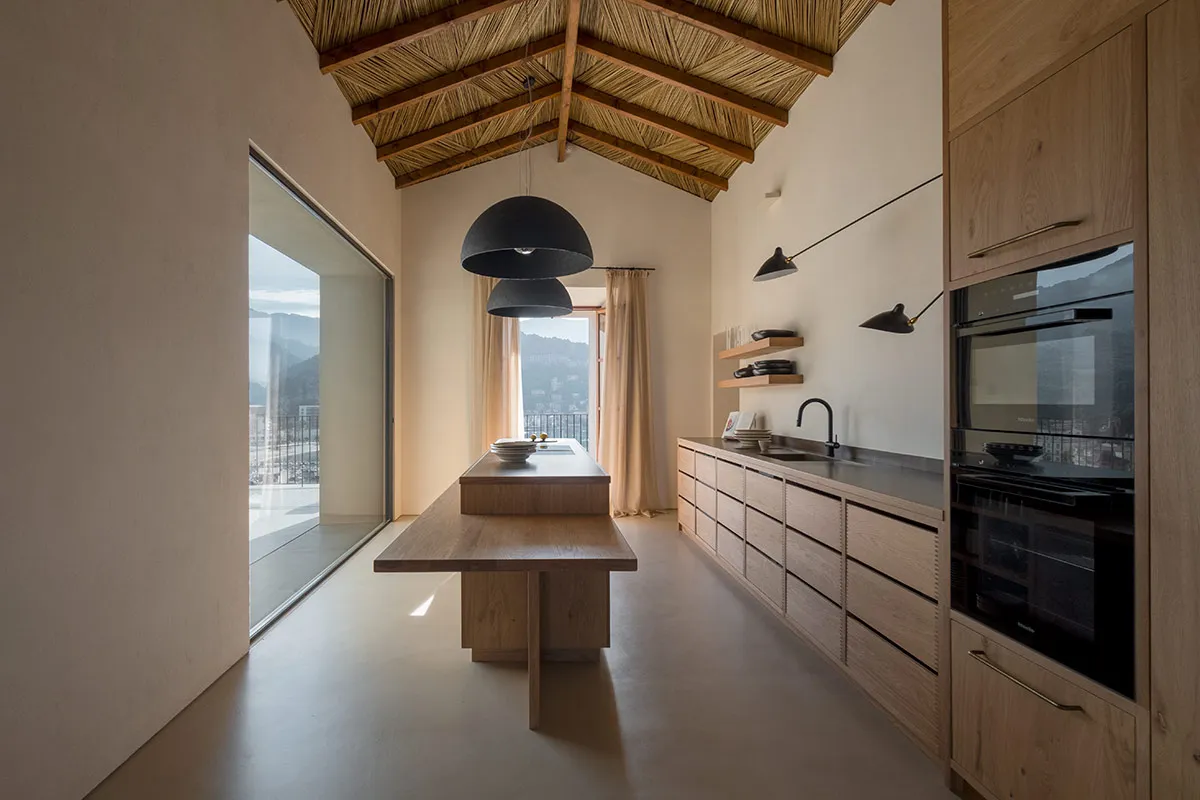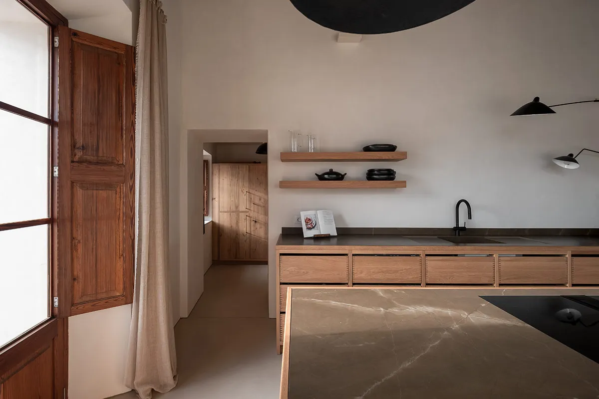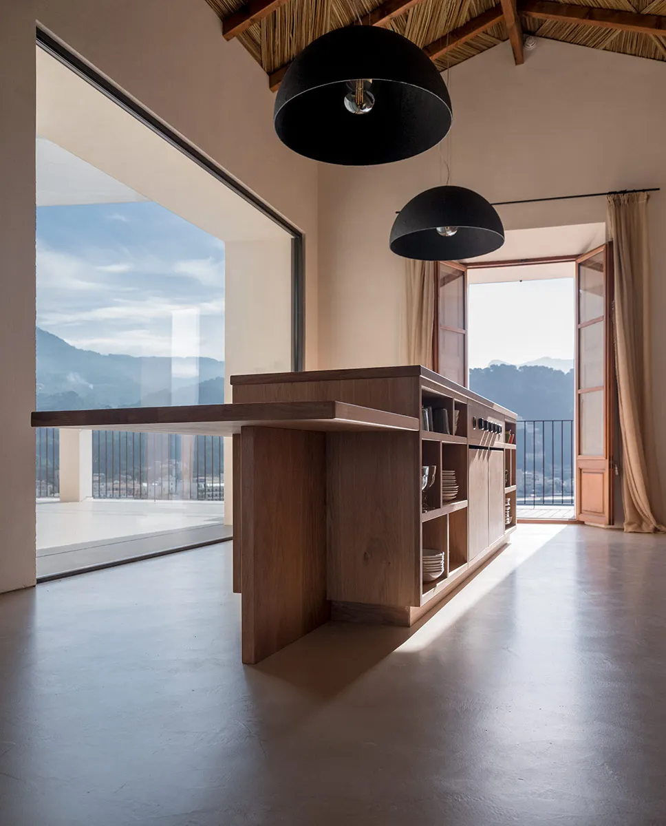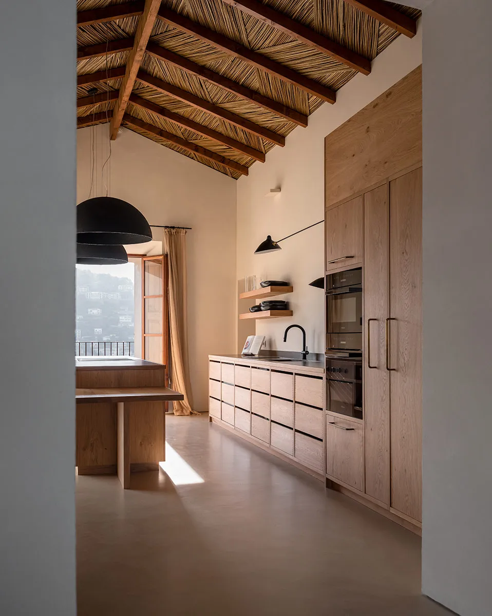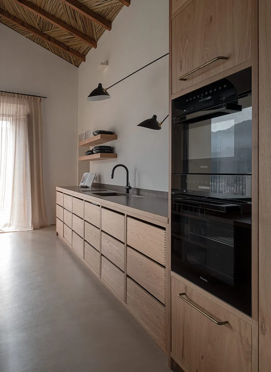 Cuina amb coa d’oronella, fabricada artesanalment en roure vintage.